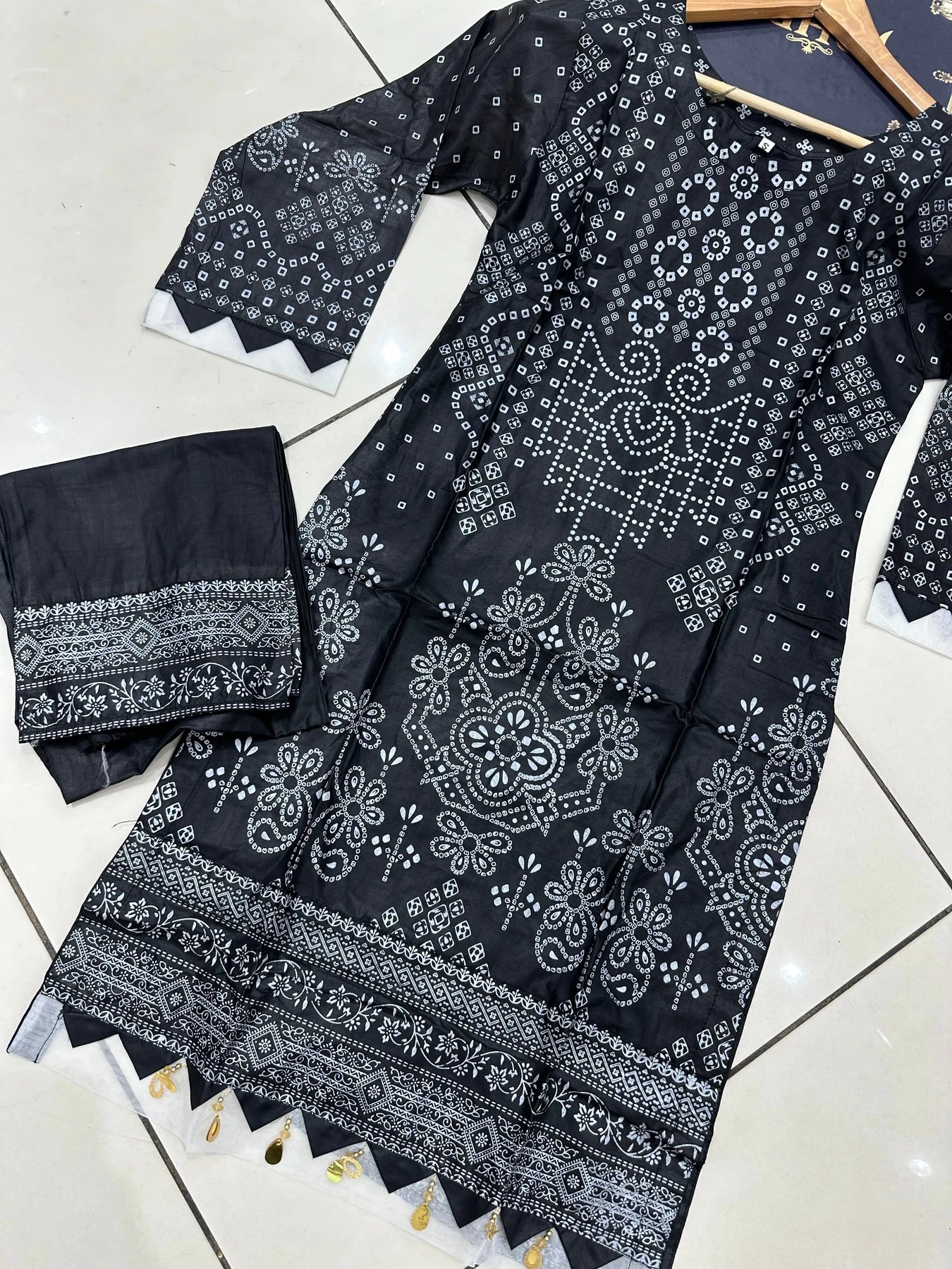 S Creations | Linen Printed 2pc Readymade | SC092 (Black and Grey)