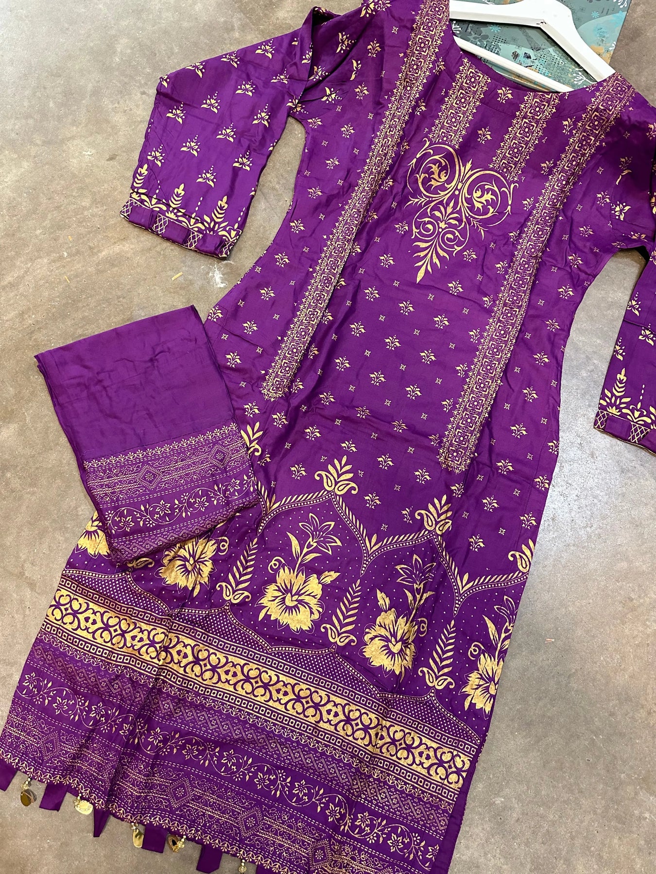 S Creations | Linen Printed 2pc Readymade | SC098 (Purple & Gold)