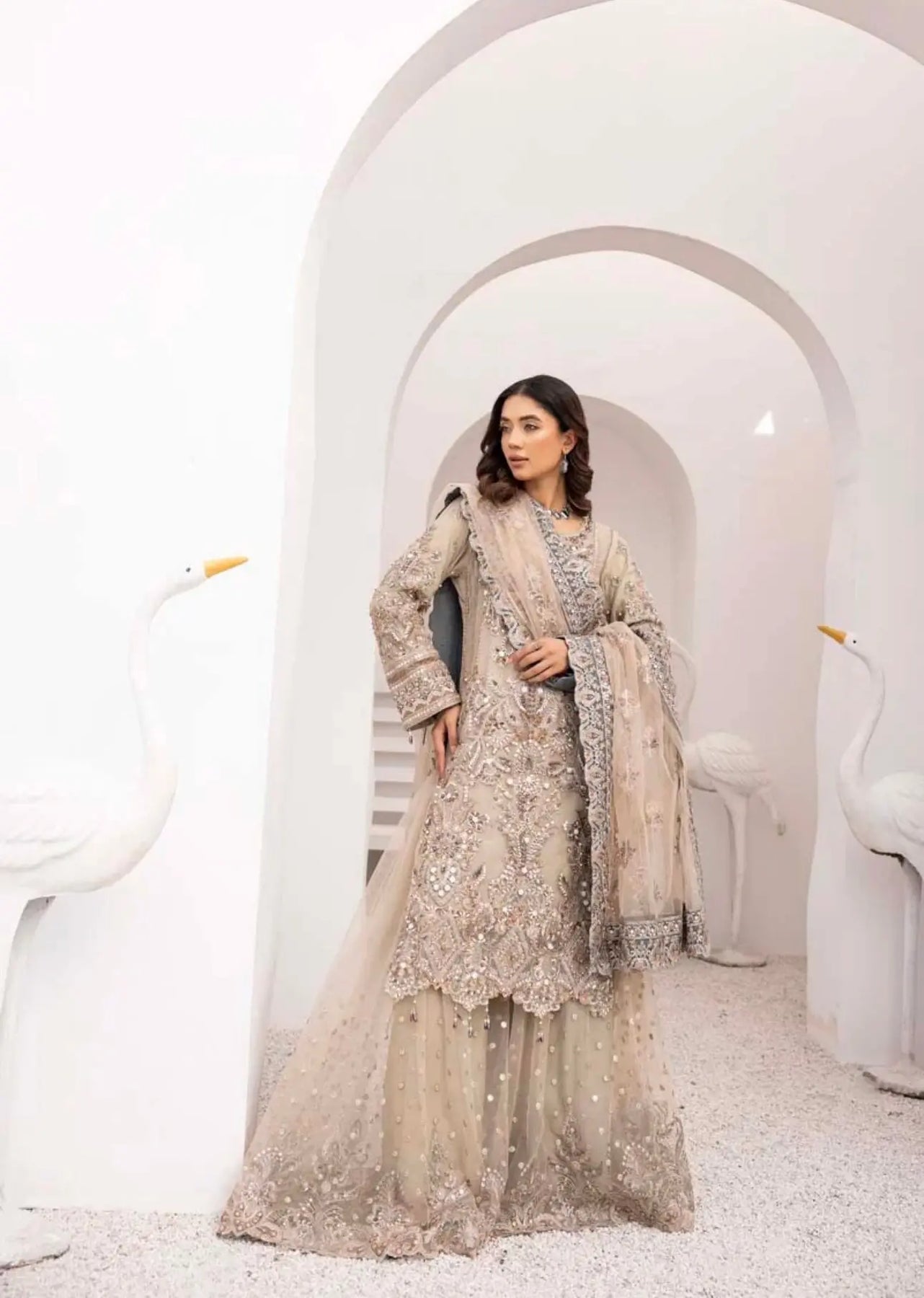 From time to time beading/ sequences may get displaced and this is not thought of as a fault but is due to the nature of the work. These articles of clothing should be worn with care.