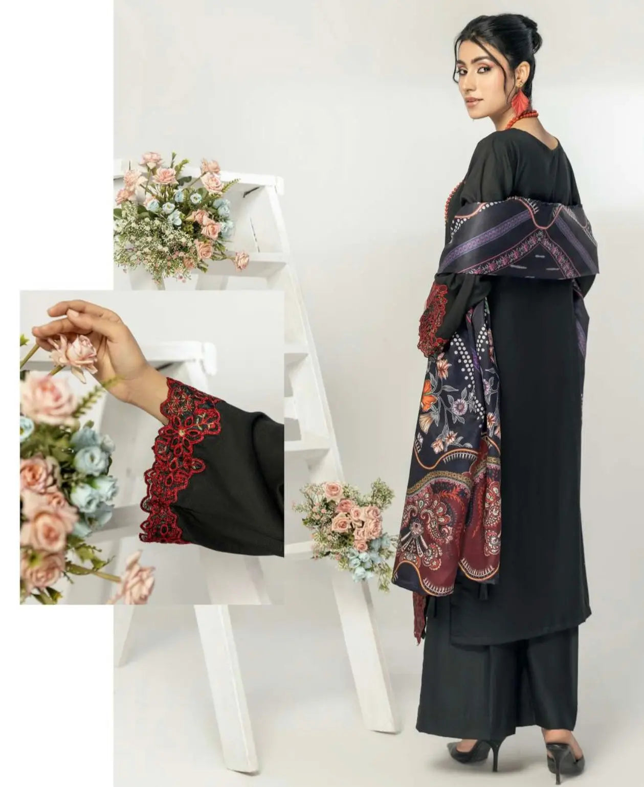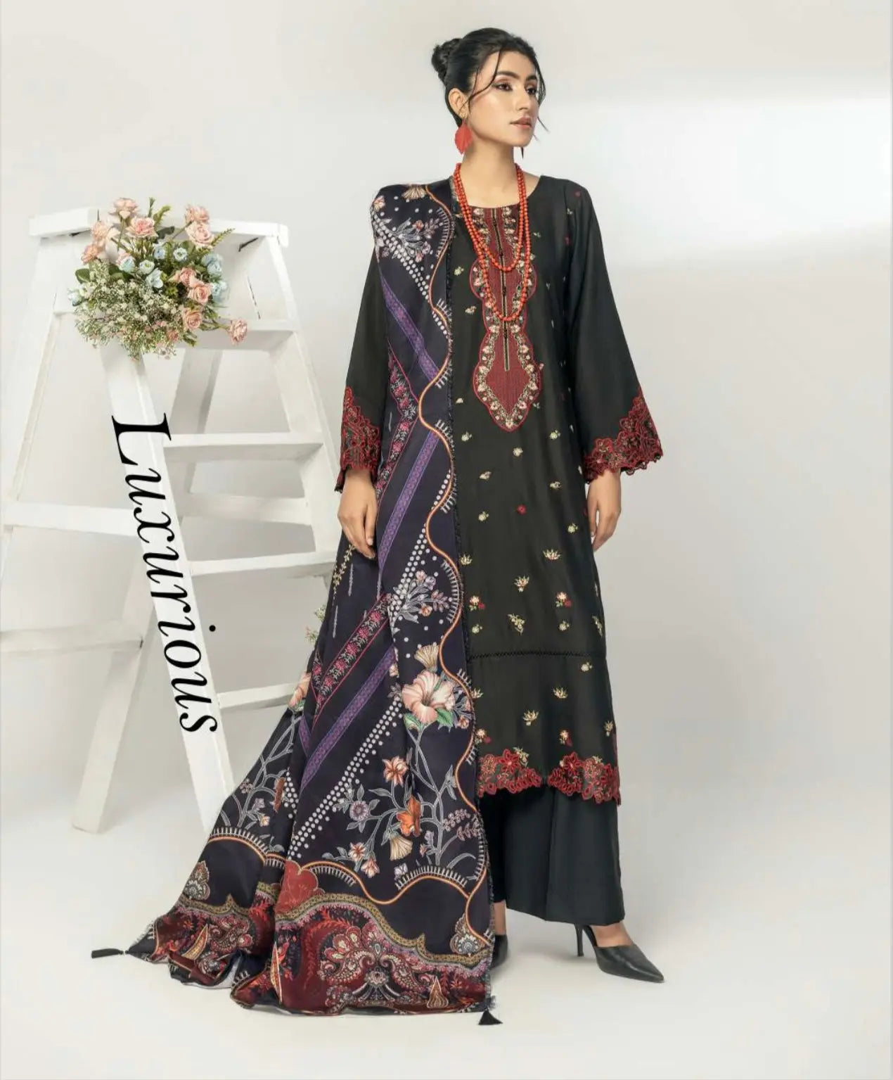 Stunning new Embroidered alpine long kameez with plazzos and a beautiful shawl. Perfect for winter or any special occasion!
