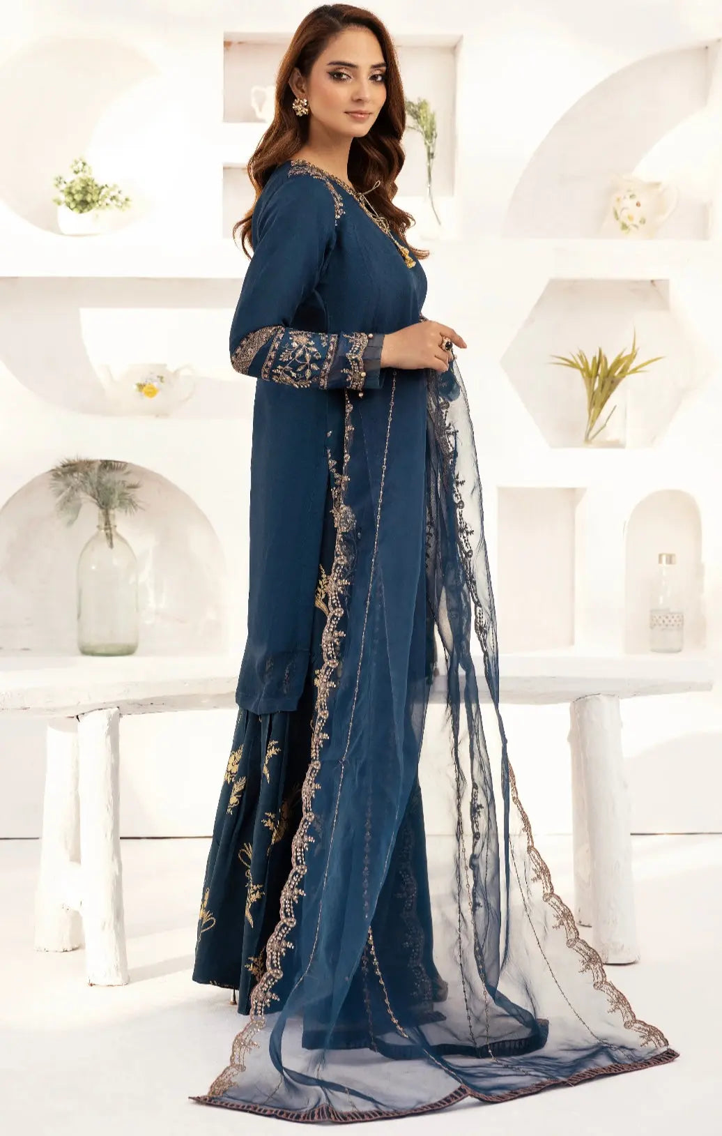 Hand Embroidered items are delicate in nature and can break of beading can become displaced. There is also a possibility in embroidery designs and prints which is unavoidable. By placing an order on our website you agree and accept the possibility of variation in comparison to the advertised images displayed on the website. We make every effort to minimise variations.