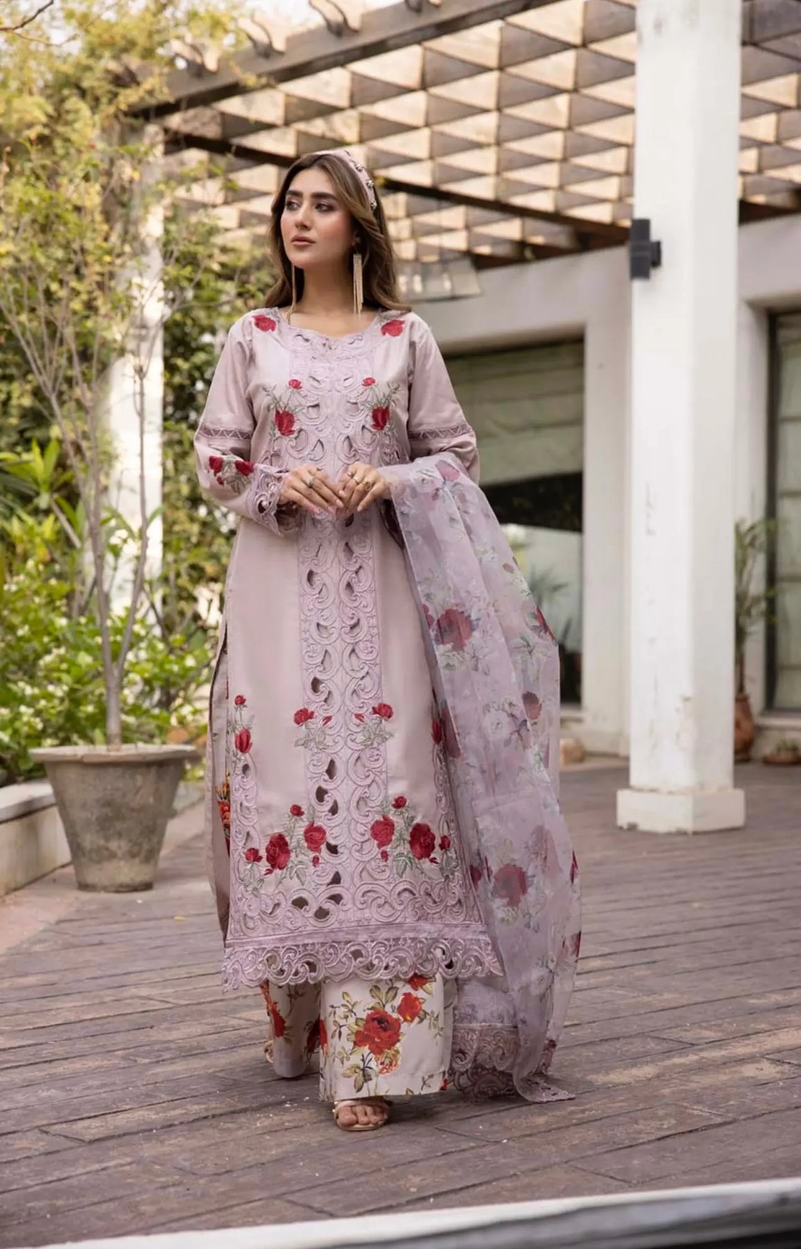 Embroidered Silk Viscose with a fancy embroidered organza dupatta
