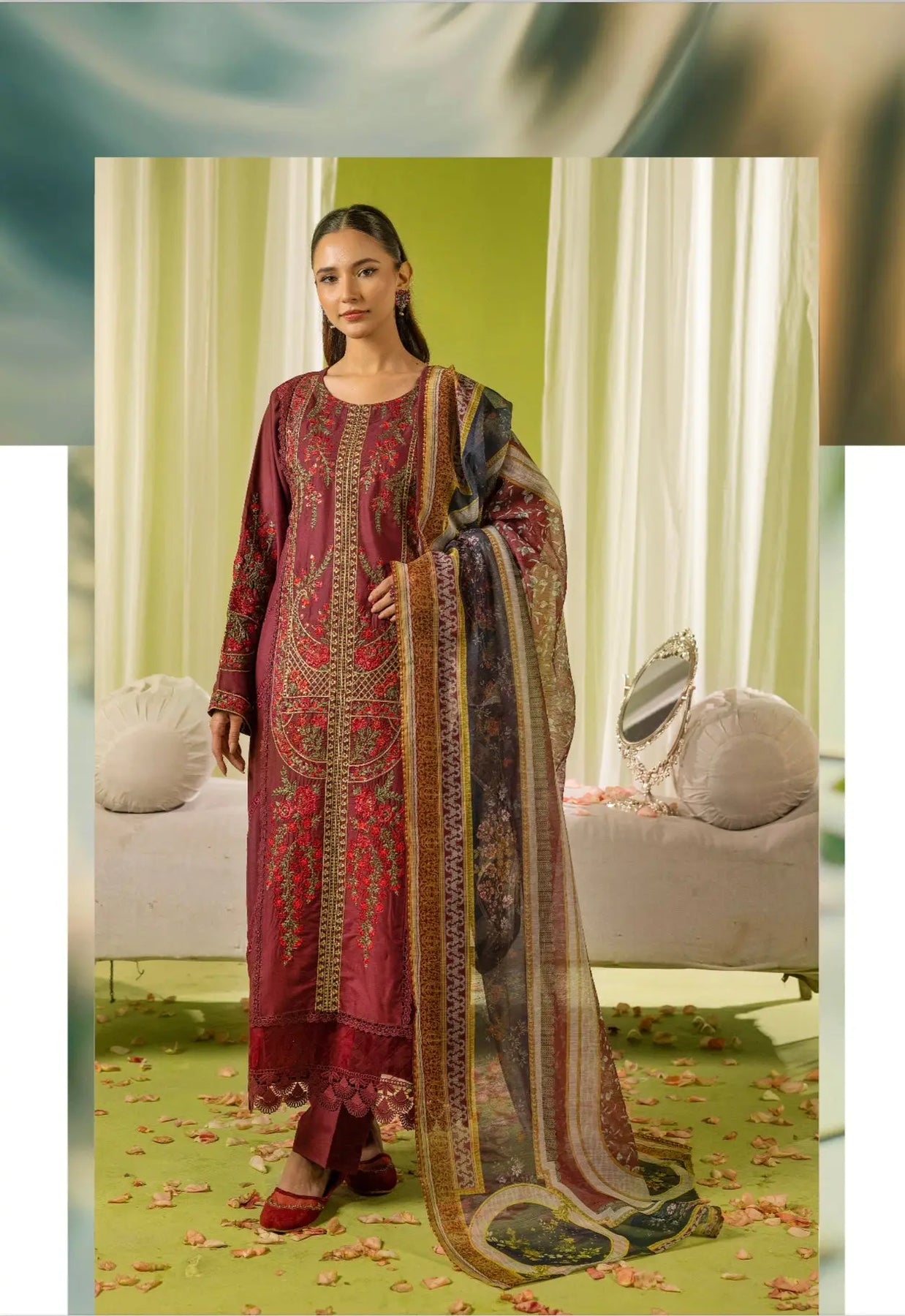 Elevate your style with the elegant Linen Fully Embroidered Collection by Simrans, designed to exude timeless sophistication and charm.