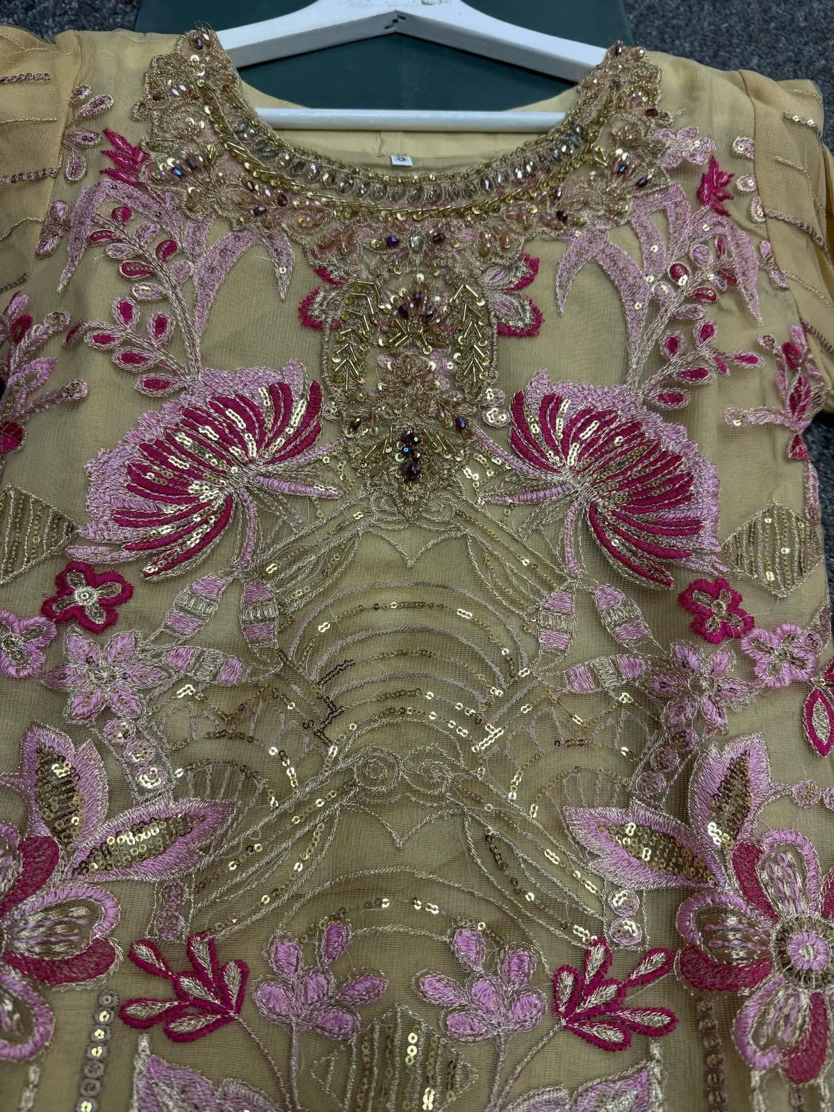 From time to time beading/ sequences may get displaced and this is not thought of as a fault but is due to the nature of the work. These articles of clothing should be worn with care.
