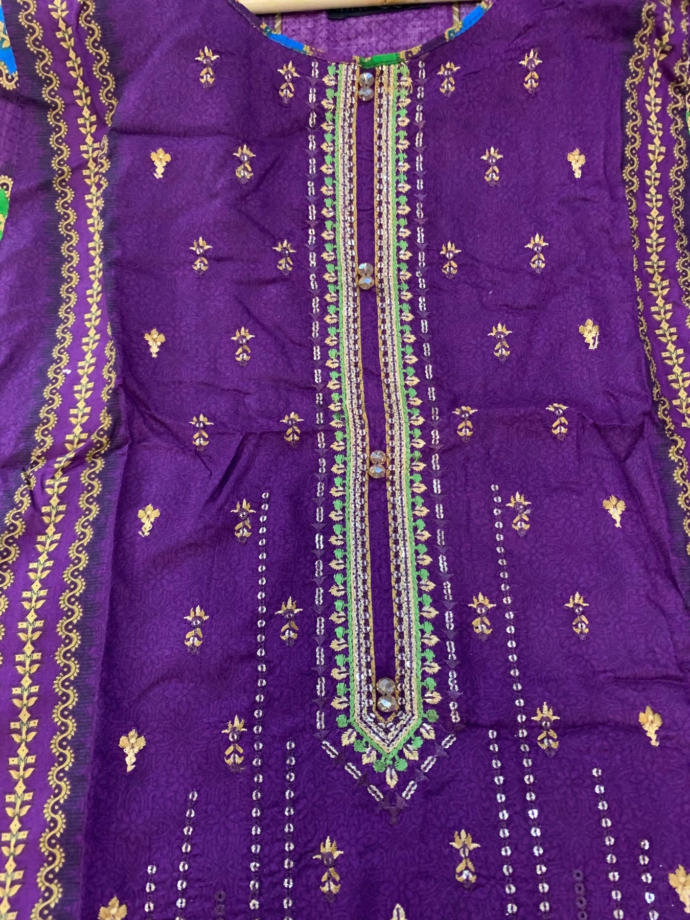 Hand Embroidered items are delicate in nature and can break of beading can become displaced. There is also a possibility in embroidery designs and prints which is unavoidable. By placing an order on our website you agree and accept the possibility of variation in comparison to the advertised images displayed on the website. We make every effort to minimise variations.
