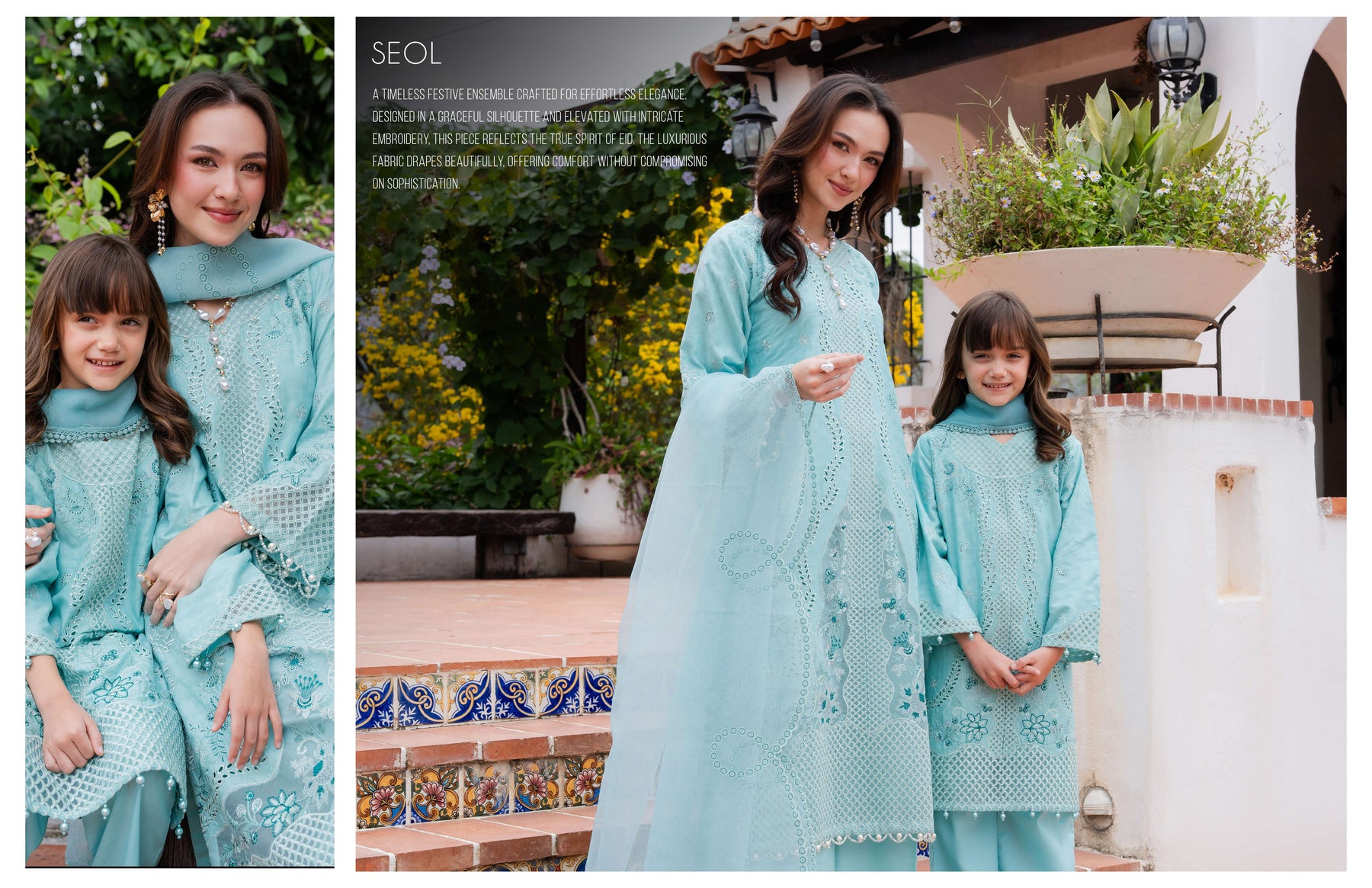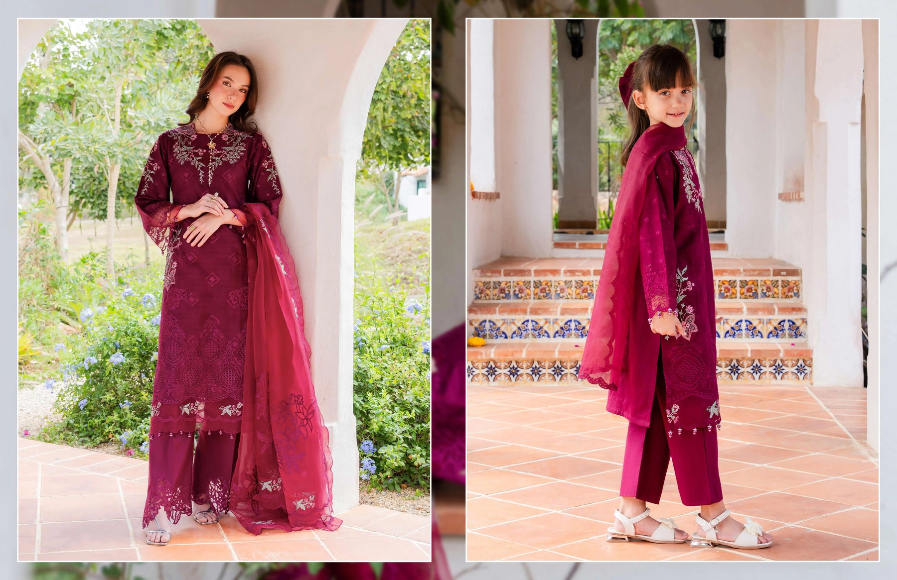 The Lotus Era Eid Luxe Pret Jacquard set captures the spirit of Eid — celebration, beauty, and togetherness. 🇵🇰✨ Designed to make you and your little one shine with elegance and joy.
