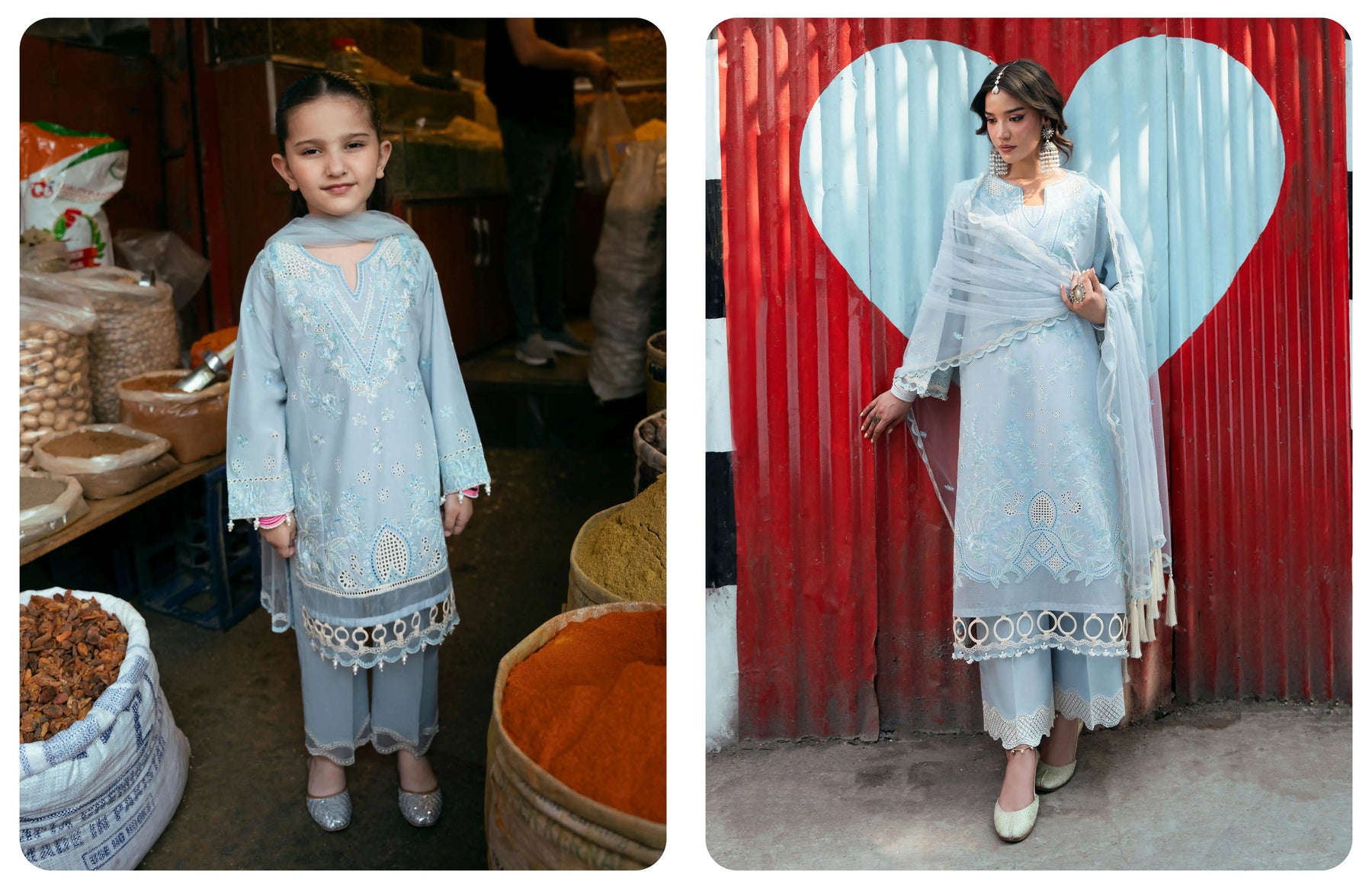This Embroidered Cotton Chikankari Mother and Daughter Eid set blends tradition, comfort, and elegance, making it a perfect choice for celebrating the joy of Eid together.