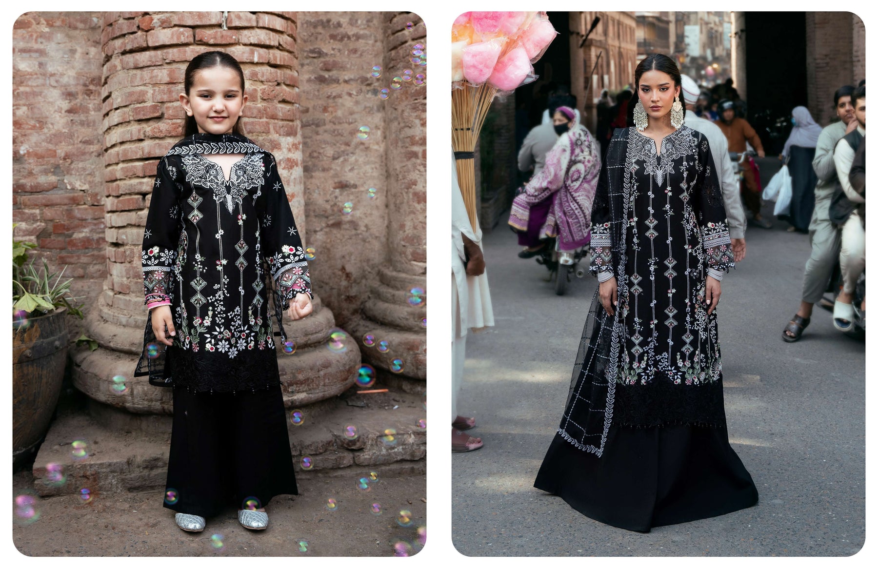 Embroidered Cotton Chikankari with Fancy Dupatta – Mother & Daughter Eid Collection