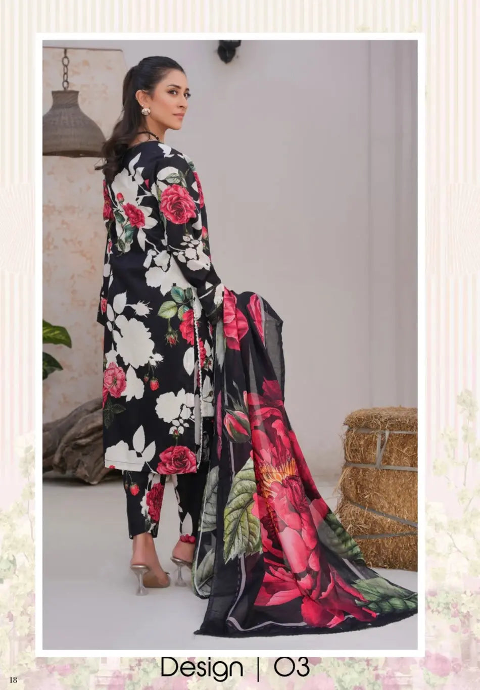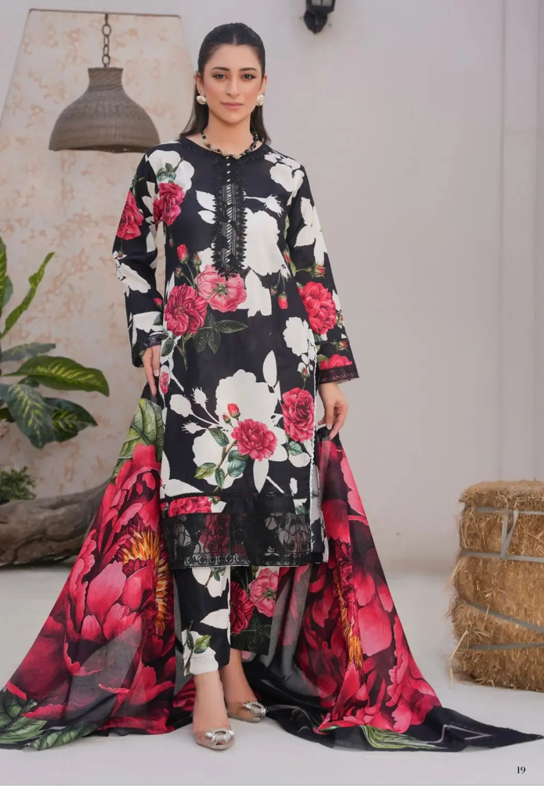 Embrace timeless elegance with our Embroidered Lawn with digital printed chiffon dupatta ensemble. Crafted from luxurious lawn, this outfit offers both comfort and style, making it perfect for both casual and formal occasions. The intricate embroidery on the fabric adds a touch of sophistication, highlighting the artistry and attention to detail that goes into every stitch.