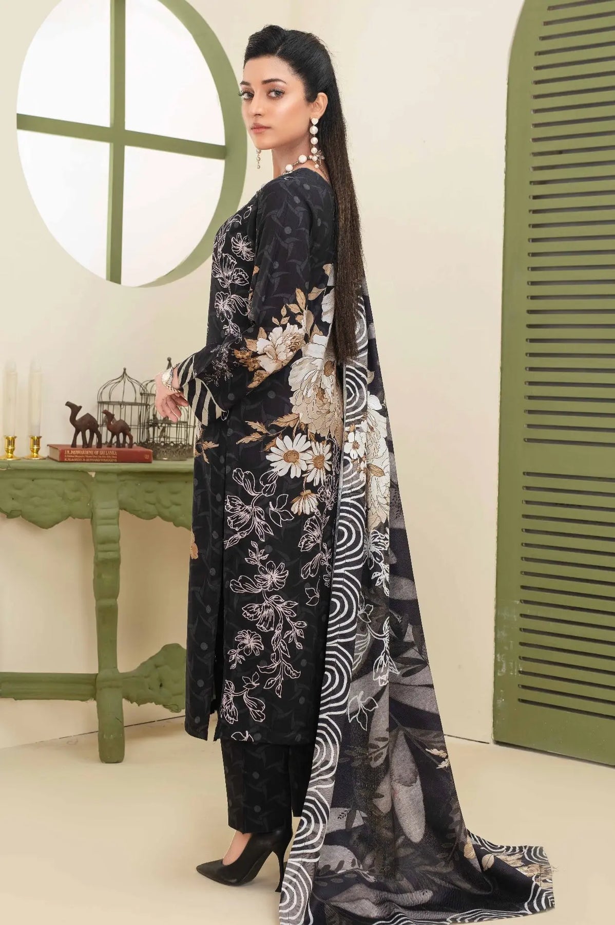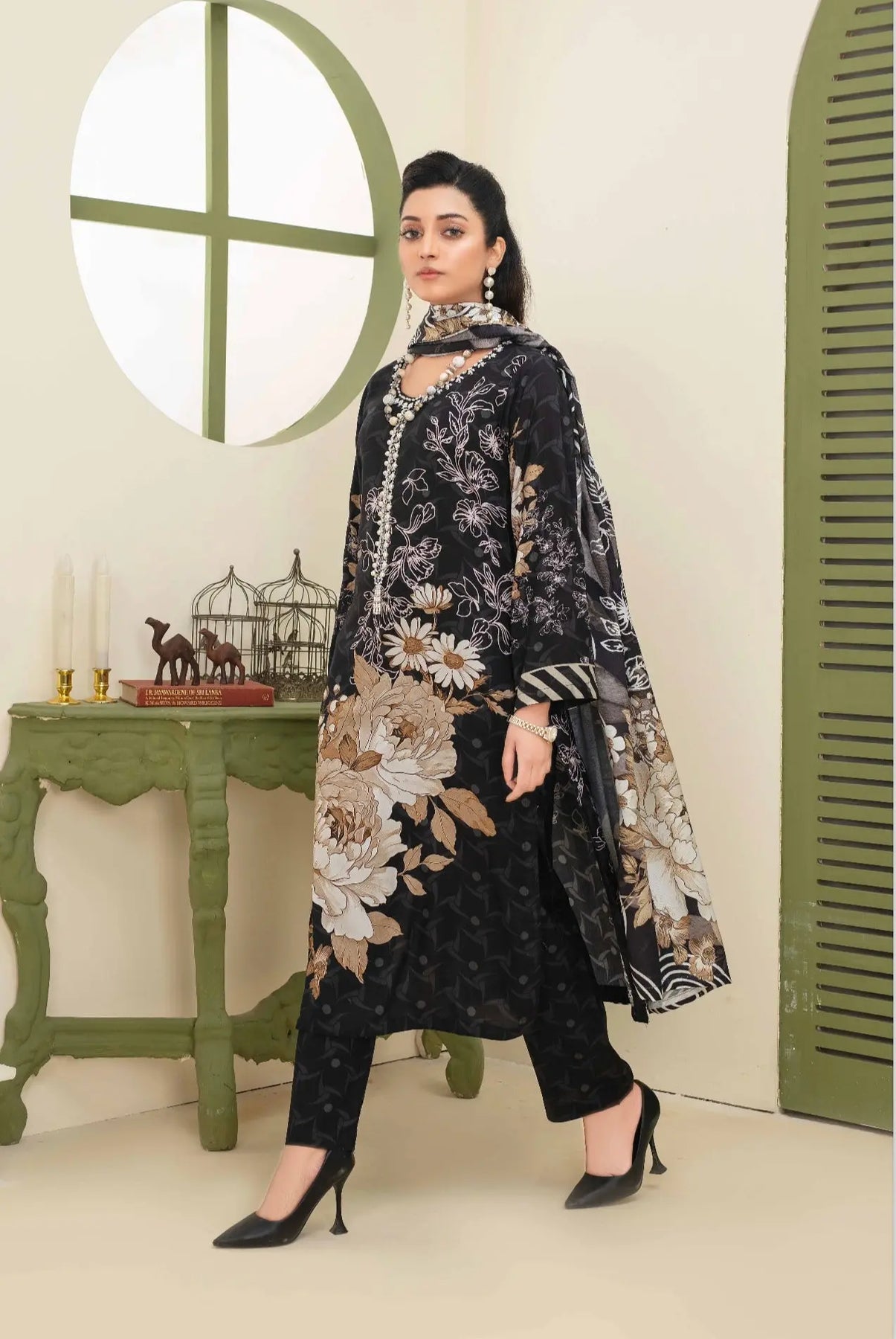 Upgrade your wardrobe with this stunning handwork linen kameez and trouser set, designed for both comfort and sophistication. The kameez features intricate embroidery and a vibrant digital print, blending traditional craftsmanship with modern style. Paired with matching trousers and a beautifully printed shawl, this outfit is perfect for festive occasions, casual gatherings.